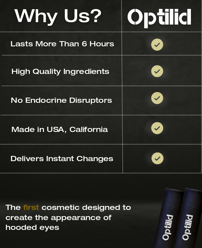 Each application of Optilid is designed to last several hours. The formula is made to hold through regular facial movements, including blinking, squinting, and looking down — so you can enjoy a hooded-eye effect that stays consistent all day long.